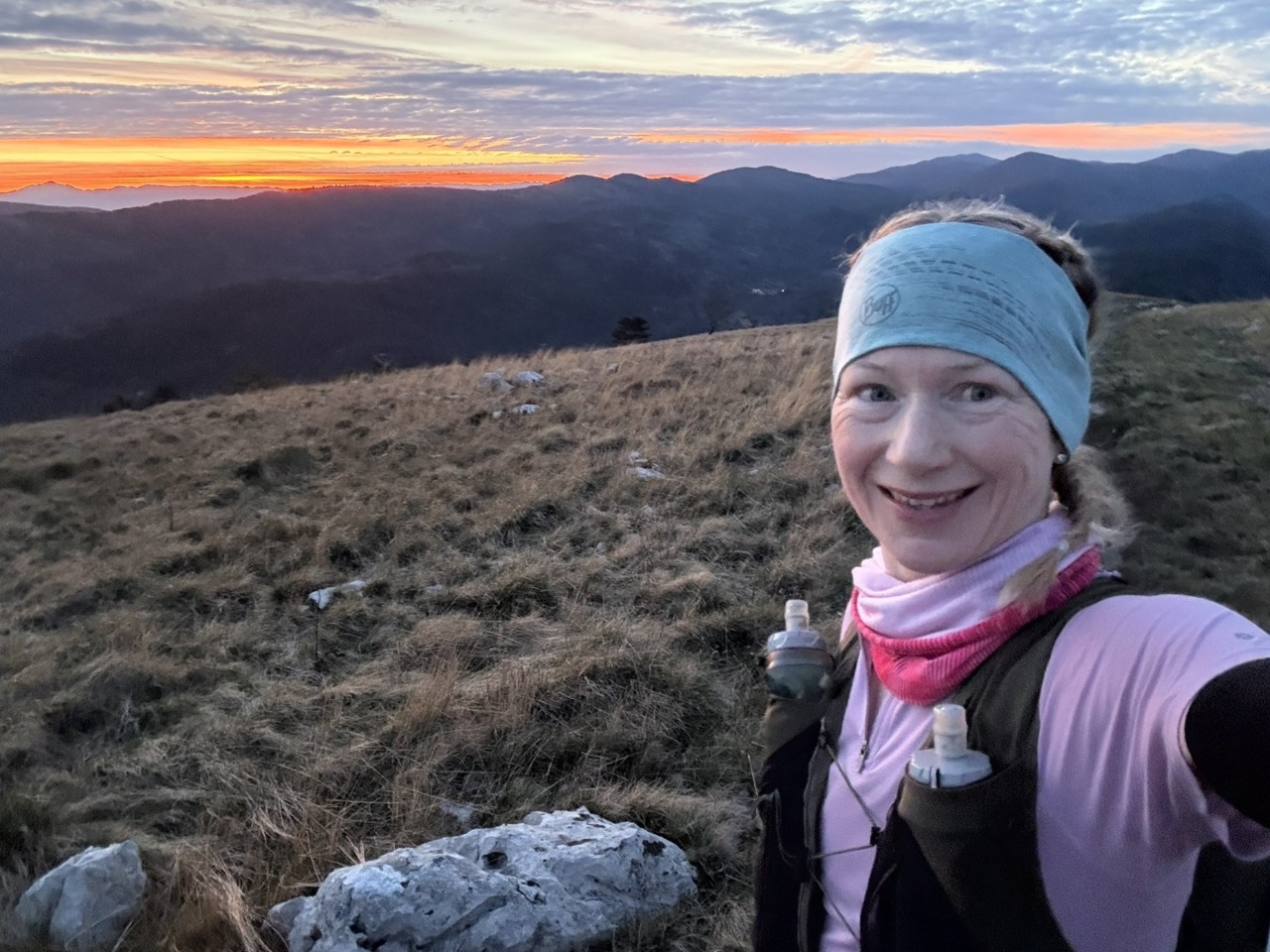 Úvod preteku sa mi ťažšie rozbiehalo a trvalo mi pár kilometrov (rozumej 50km), kým som si našla svoje tempo. To už som však išla sama, nakoľko sa moja polovička rozhodla trasu si viac užiť a vychutnávať východ slnka som stihla na vrchole, kde nás čakala vatra s ponukou rôznych domácich nápojov. Stále neviem, či to bola oficiálna občerstvovačka.