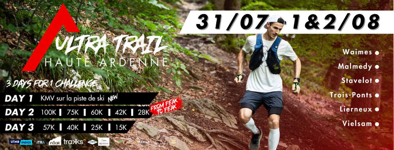 Ultra Trail Haute Ardenne - 100KM je hlavným podujatím tohto bežeckého eventu, výnimočnou výzvou spájajúcou dva najvyššie body Belgicka. Za úsvitu sa bežci vyštartujú zo Signal de Botrange (694 m), aby prešli planinu Hautes Fagnes, divokú a zachovanú krajinu. Po technicky náročnom úseku pri hrade Reinhardstein sa pokračuje smerom na Malmedy a bežci dorazia do Stavelotu, kde budú mať tú česť prejsť areálom Opátstva Stavelot. Trasa, náročná a pestrá, ich potom povedie cez Trois-Ponts a Lierneux, pred posledným výstupom na Baraque de Fraiture (652 m). So 100 km a 3300 m stúpoania je tento ultrabeh úplným ponorením do terénu pohoria Arden a balansom medzi technickosťou, vytrvalosťou a silnými emóciami.