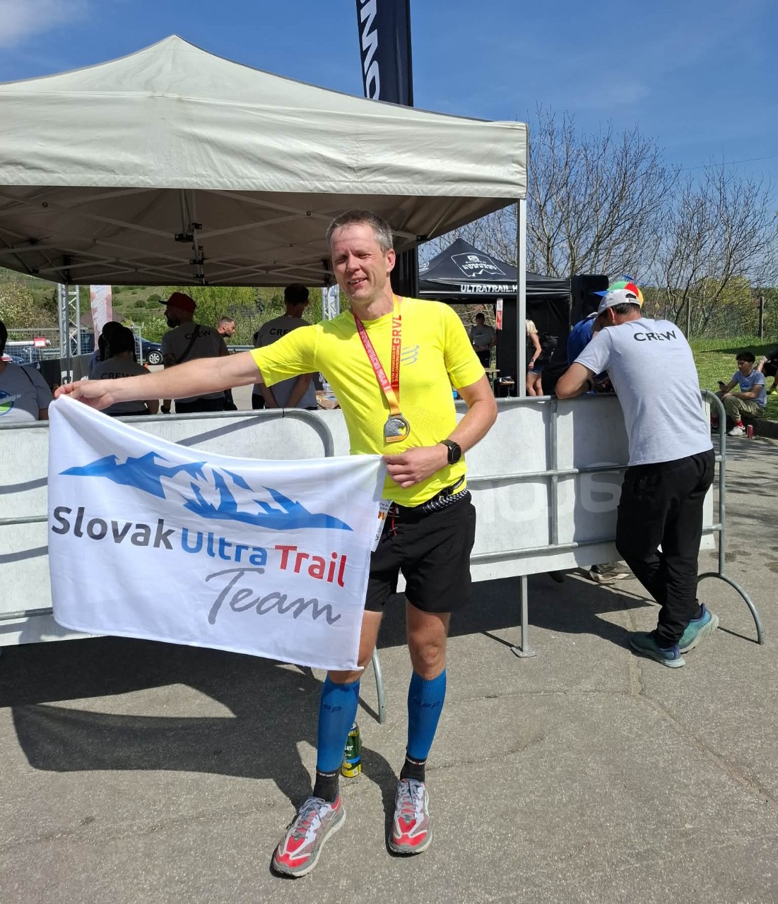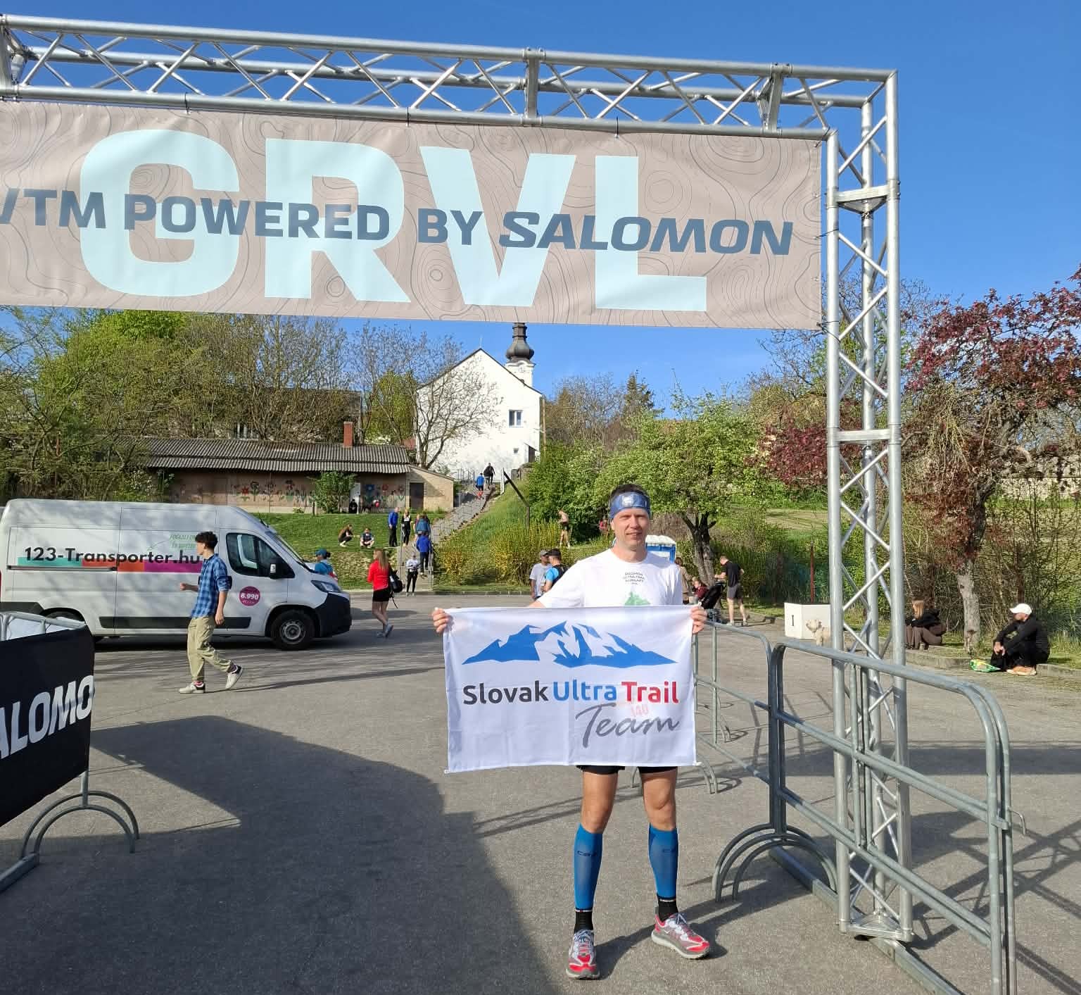 Povinná výbava je tu veľkoryso stanovená na mobil, občiansky a 0,5 litrovú fľašu. Na občerstvovacích staniciach by mal byť k dispozícií ISO drink, voda, banány, pomaranče, nejaké pečivo, čokoláda a dokonca aj gély. Tieto informácie ma presviedčajú, že stojím na štarte len s fľašou v ruke a s dvoma gélmi za opaskom. Všetko ostatné poberiem po ceste. Na pretekoch, ktoré by mali trvať do 5 hodín sa žalúdočných problémov nebojím, takže nemám problém s tým, že ponúkaná značka gélov je pre mňa veľká neznáma.